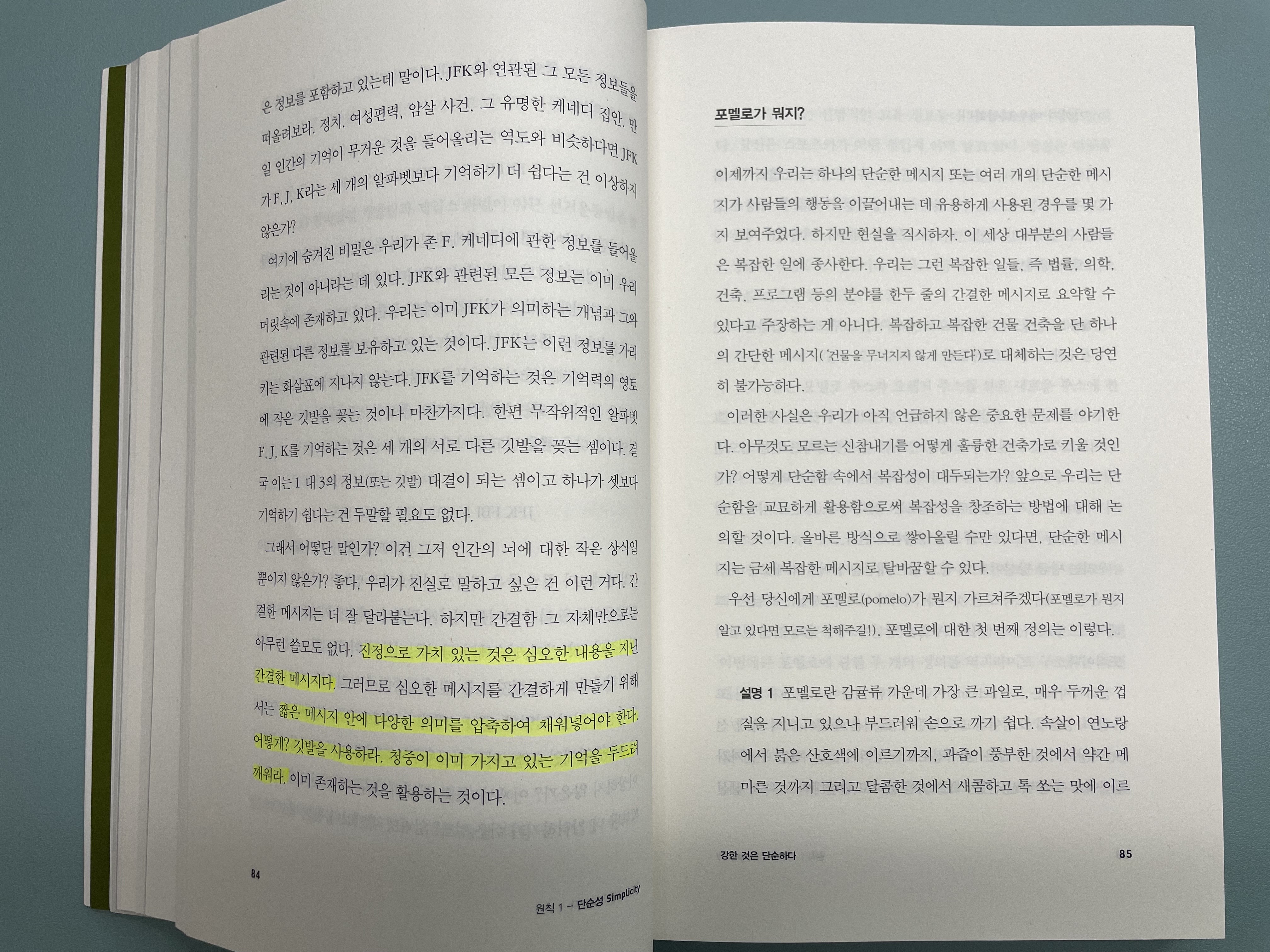 스티커 메시지 첫 번째 원칙은 단순성이다. 를 만들 때는 심오한 내용을 지닌 간결한 메시지가 중요하다. 짧은 메시지 안에 다양한 의미를 압축하여 채워 넣어야 하는데, 그 방법으로는 청중이 이미 가지고 있는 기억을 두드려 깨워야 한다.