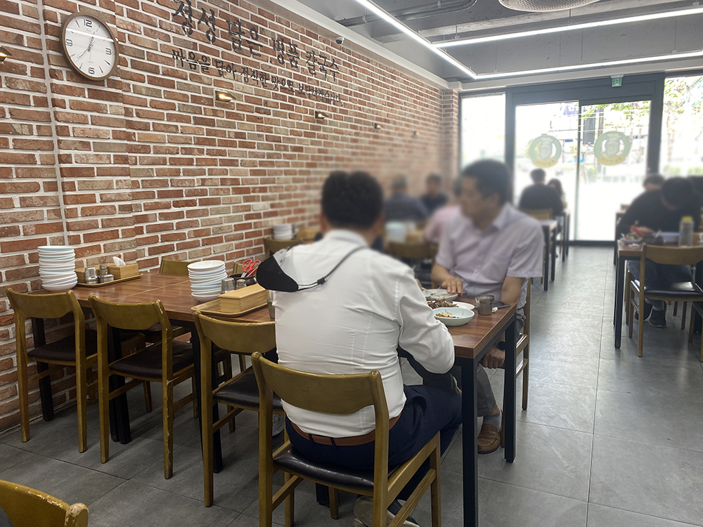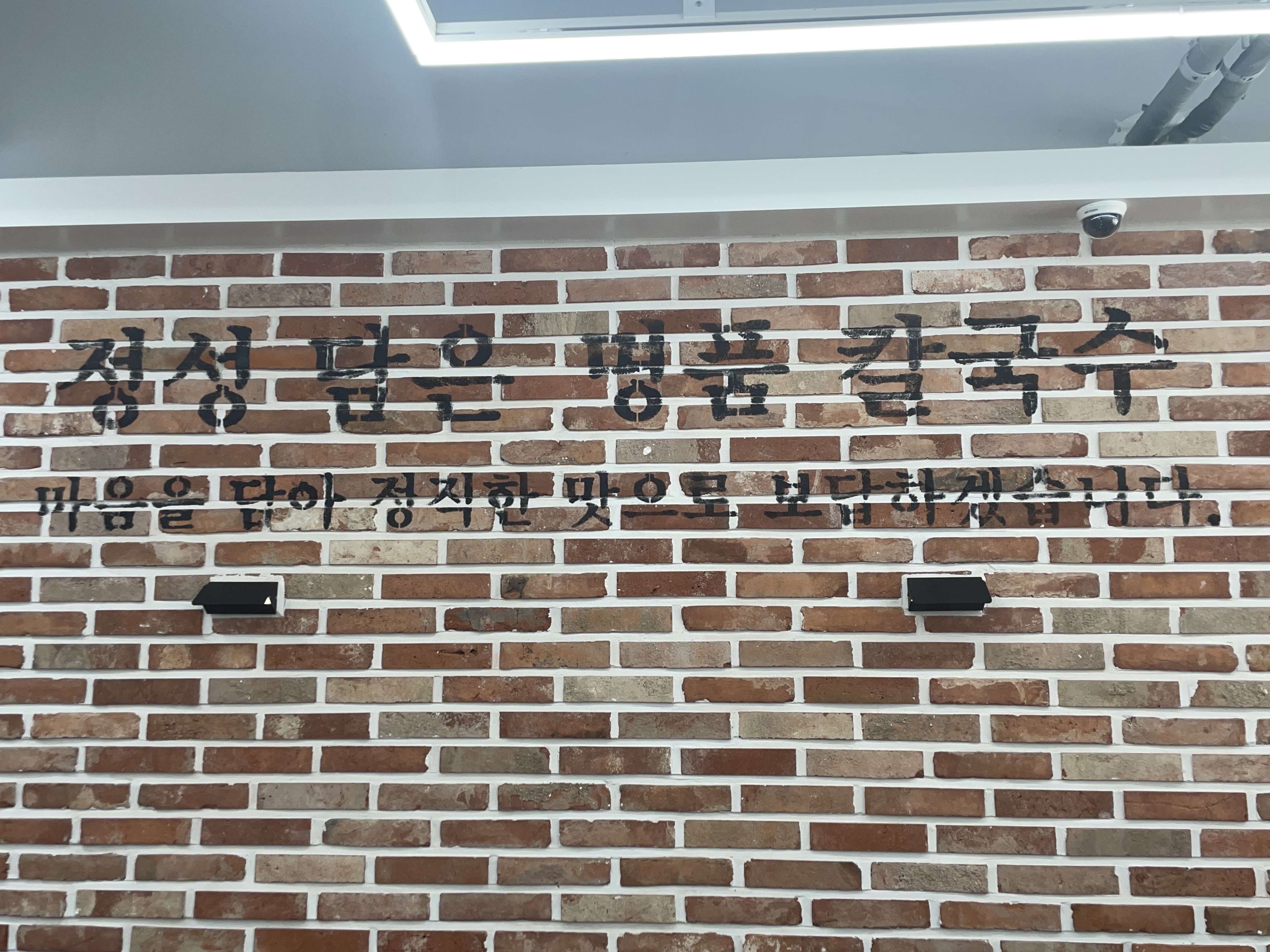 리뉴얼 이후 한쪽 벽면을 빨간벽돌과 예쁜 조명으로 장식하고 주방쪽도 조명이 참 예뻐서 칼국수전문점 치고는 내부가 분위기있고 깔끔하다는 생각이 들었습니다.