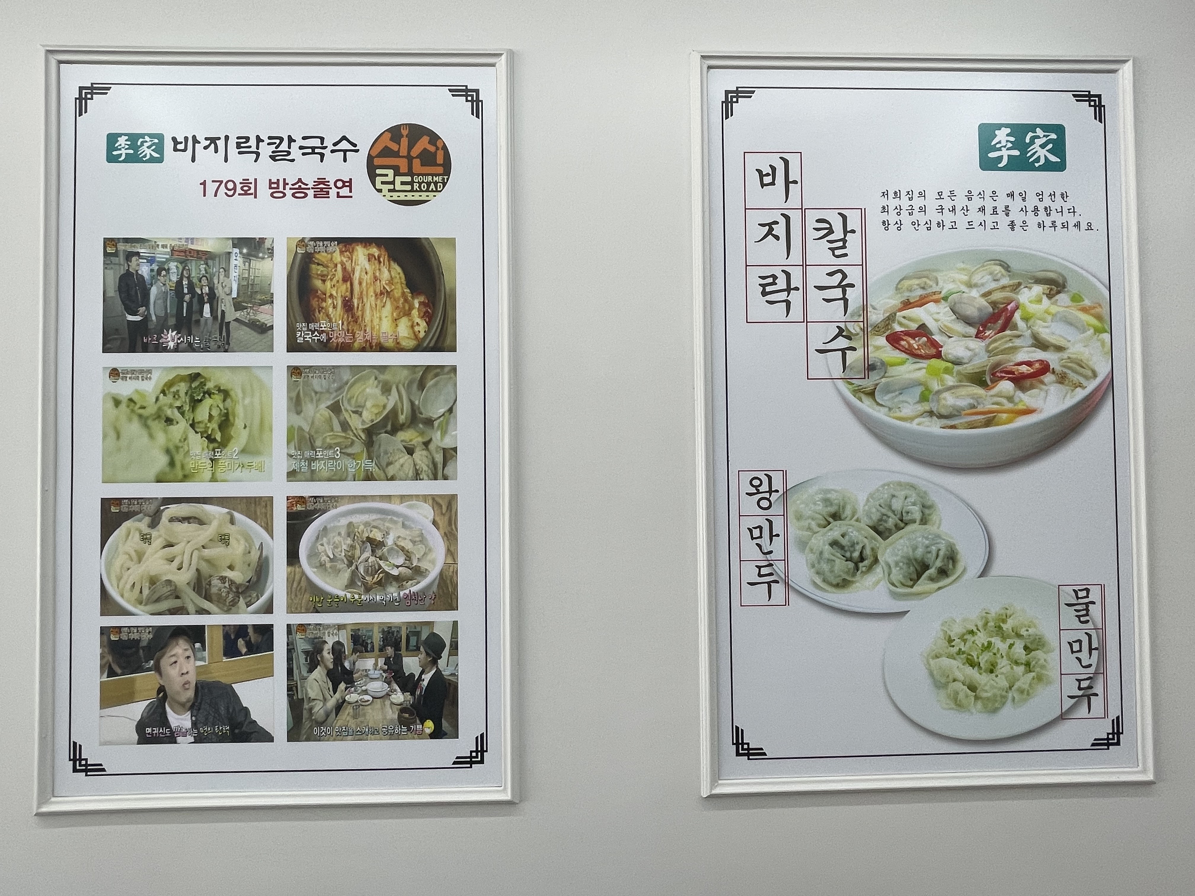 한쪽벽면에는 식신로드 출연진들의 싸인과 식신로드에 방영된 맛집이라는 정보가 있어 자세히 보니 식신로드1 179회(2014.04)에 출연된 바지락칼국수 맛집이었습니다.